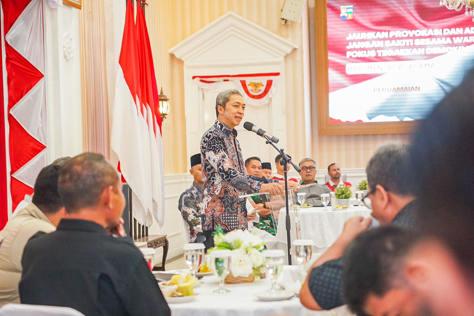 “Mari kita menyampaikan pesan untuk menjaga kerukunan dan kedamaian dan juga menghindari provokasi terkait hal-hal yang bisa mengarah kepada kerusakan, intoleransi, dan perpecahan,” ujarnya.