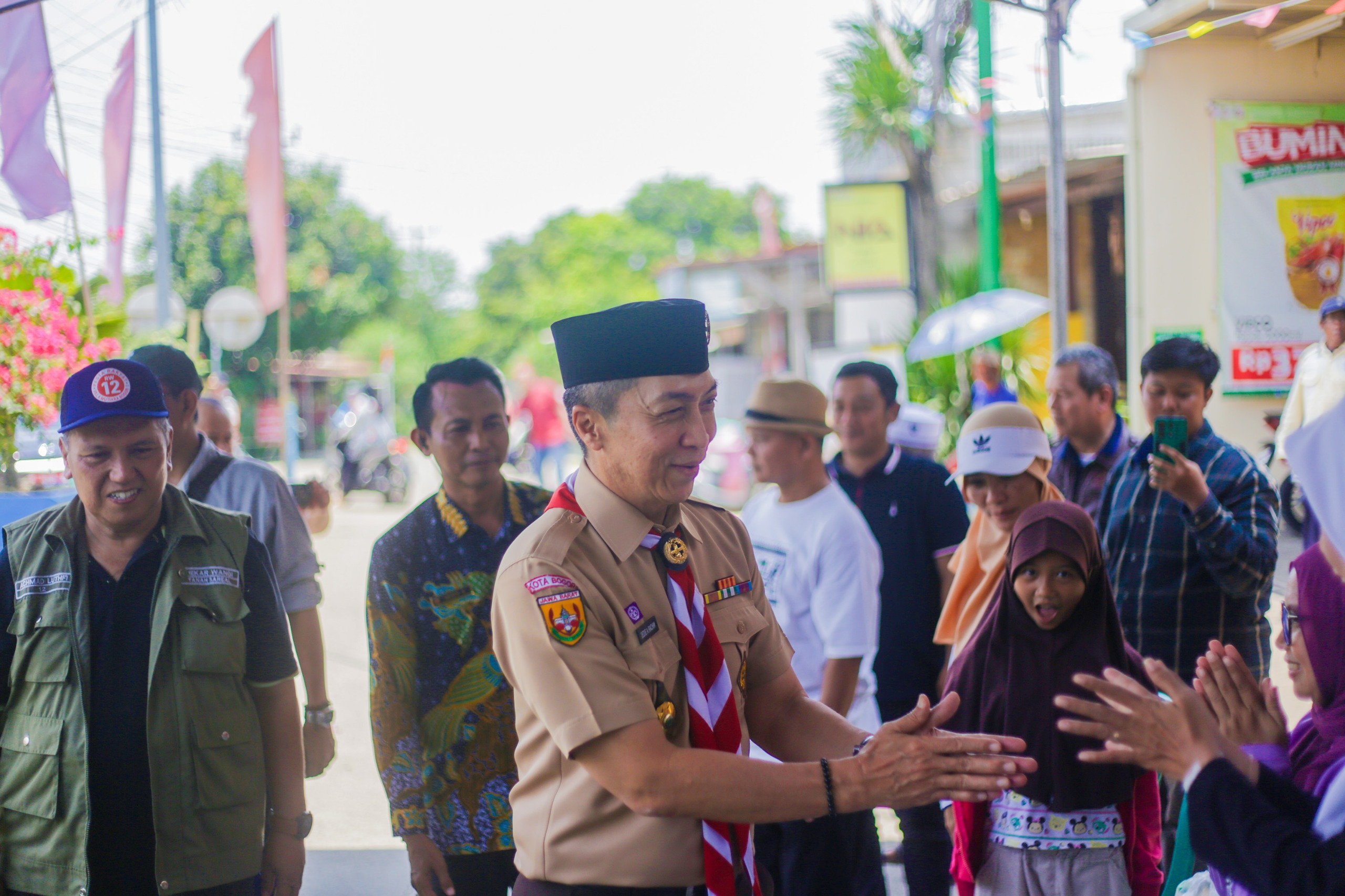 Kota Bogor – Wali Kota Bogor, Dedie A. Rachim, menghadiri pesta rakyat dan bazar UMKM yang diselenggarakan di RW 12 Perumahan Villa Mutiara Bogor, pada Sabtu (4/10/2025).