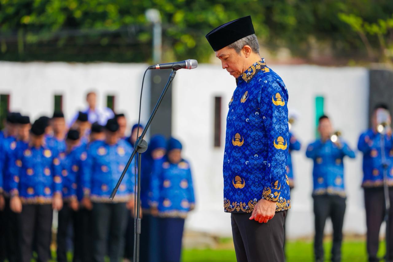 Kota Bogor – Wali Kota Bogor, Dedie A. Rachim, bertindak sebagai pembina upacara ziarah dan tabur bunga dalam rangka HUT ke-54 KORPRI yang berlangsung di Taman Makam Pahlawan Dreded, Kecamatan Bogor Selatan, Kota Bogor, Senin (17/11/2025).