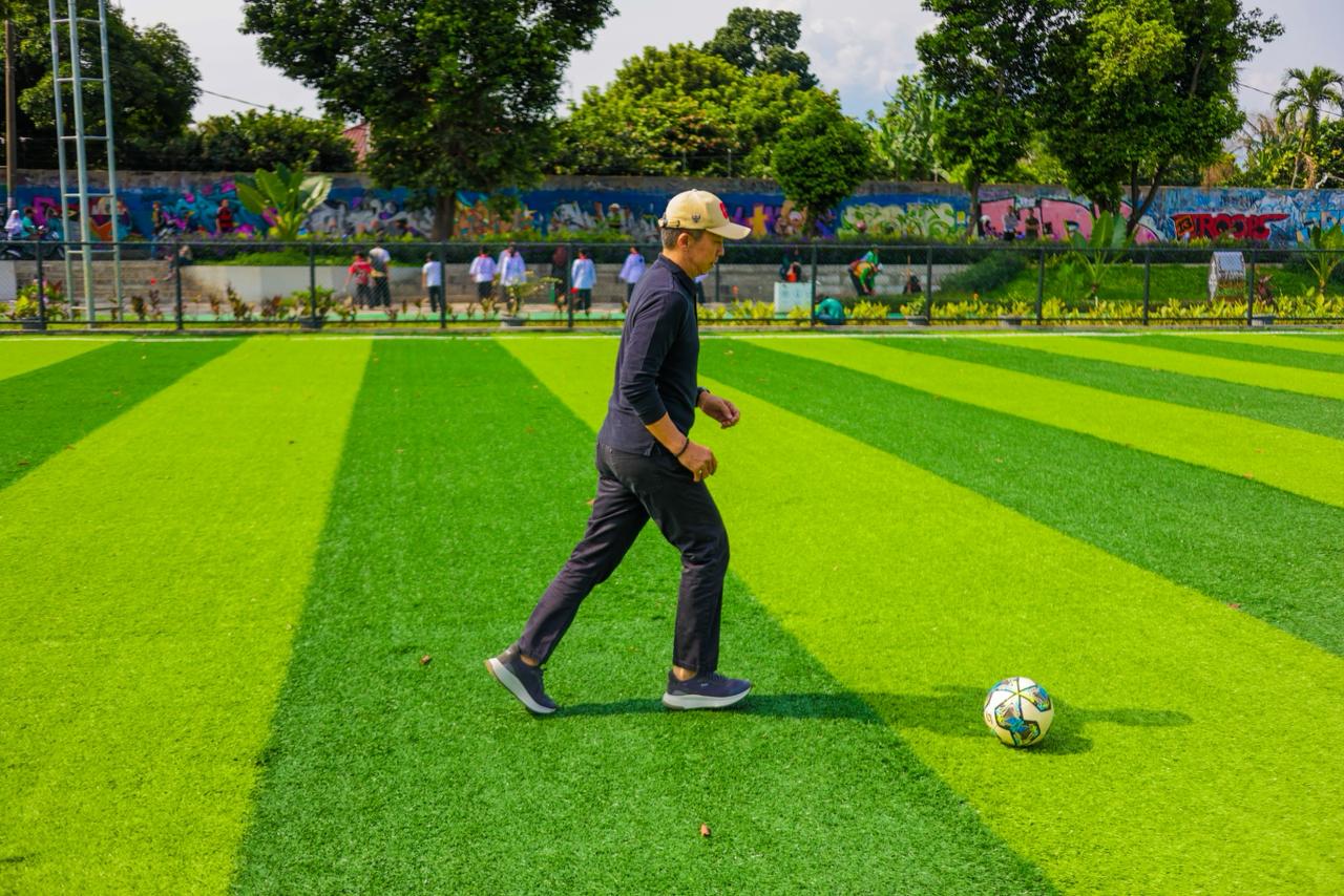 “Saya juga mengimbau semua untuk bisa merawat. Kalau main di sini jangan pakai sepatu pull besi, sesuaikan dengan kondisi lapangan mini soccer dengan rumput sintetis,” tuturnya.