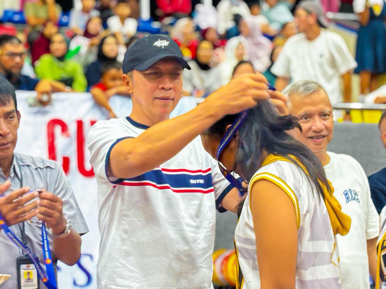 Sebelum menyerahkan piala kepada para pemenang, Dedie Rachim yang didampingi perwakilan perangkat daerah dan pihak penyelenggara, menyaksikan pertandingan pamungkas kategori SD kelas 5 dan 6 Putri Elite yang mempertemukan SDN Polisi 4 dan SDN Polisi 1 Kota Bogor.