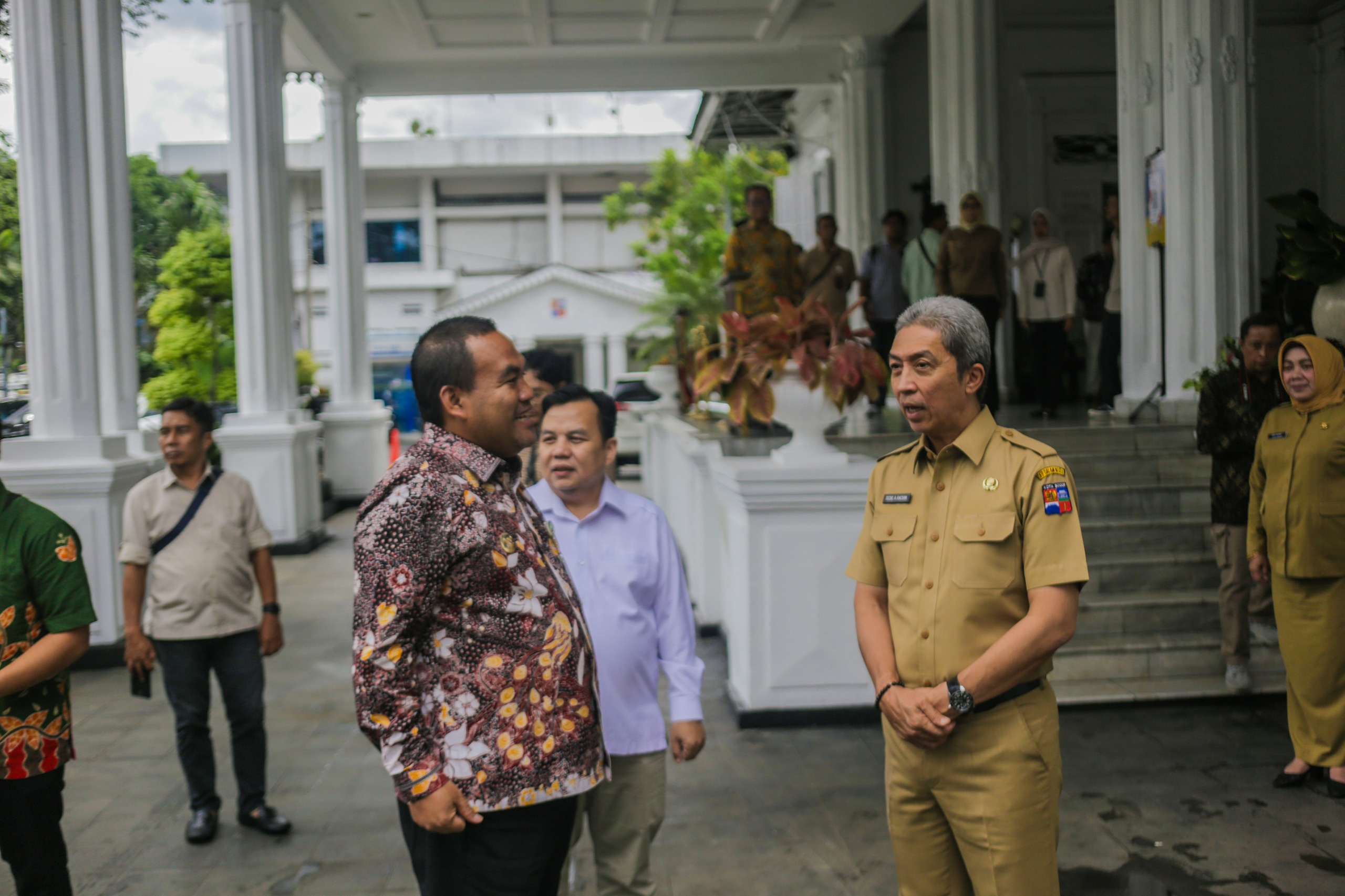 Rombongan Pemkab Blora yang dipimpin Bupati Blora Arief Rohman bersama Wakil Bupati Blora Sri Setyorini disambut langsung oleh Wali Kota Bogor, Dedie A. Rachim, di Paseban Sri Bima, Balai Kota Bogor, Senin (15/12/2025).