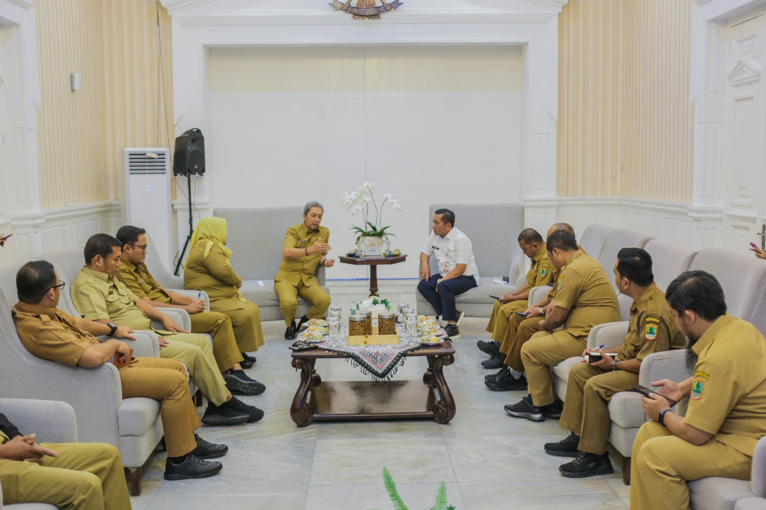 Kota Bogor – Wali Kota Bogor, Dedie A. Rachim, menerima kunjungan kerja Bupati Karawang, H. Aep Syaepuloh, bersama jajaran Pemerintah Kabupaten (Pemkab) Karawang di Balai Kota Bogor, Senin (12/1/2026).