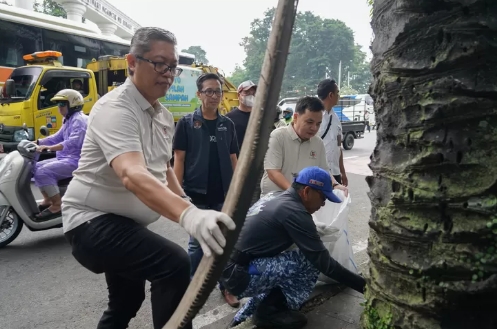 ​Kegiatan bebersih ini menyusuri rute mulai dari ikon kebanggaan Kota Bogor, Tugu Kujang, hingga kawasan Jalan Suryakencana.