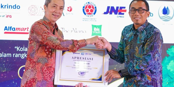 Kota Bogor – Wali Kota Bogor, Dedie A. Rachim, menerima piala apresiasi yang dianugerahkan kepada Kota Bogor dalam kategori Daerah Peduli Inovasi